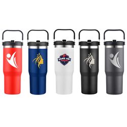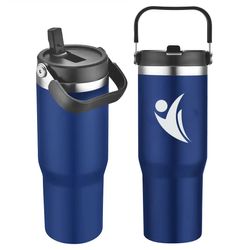 This 30oz double wall tumbler combines functionality and value. It features a food-grade polypropylene (PP) inner for lightweight insulation, and a coated stainless steel outer shell for durability and grip. Designed to keep drinks hot or cold while reducing condensation, it comes with a convenient built-in carrier and straw. Each tumbler is securely packed in egg crate-style packaging to protect during shipping or storage—ideal for high-volume promotions. Weight: 30oz.